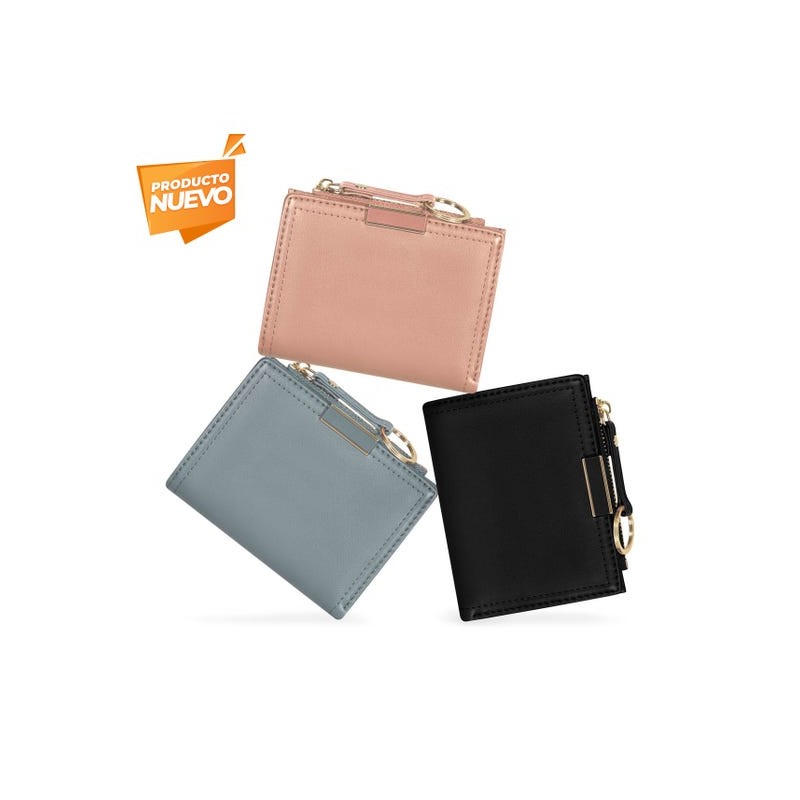 Cartera con diseño funcional y atractiva. Incluye compartimentos internos para tarjetas y credenciales, así como una mica transparente que mantiene tu identificación siempre visible. Botón central que mantendrá seguras tus pertenencias. El monedero integrado se distingue por una cremallera con asa de curpiel y aro metálico, que además de estilizar, facilita su manejo. El toque final es una placa metálica en el exterior.