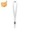 Fabricado con material especial para sublimación. Incluye broche de seguridad, clip desmontable y gancho metálico con giro de 360°.